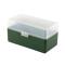 BOITE DE RANGEMENT VERTE COUVERCLE TRANSPARENT 50 MUNITIONS CAL 243