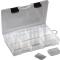 Boite de rangement en plastique pour leurre. Fabriquée dans un plastique résistant aux leurres souples, cette boite est composée de 3 compartiments allongés fixes avec séparations amovibles.