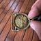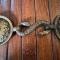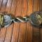 Deux médaillons En laiton à l'effigie du caducée militaire joint par une boucle en serpent à deux têtes .