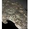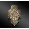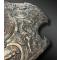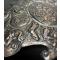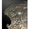 Bouclier d'apparat en cuivre repoussé à décor d’une scène de bataille dans un médaillon central, rythmé de quatre médaillons ovales figurant les allégories de la guerre, de la victoire, de la paix et de la prévenance sur fond animé de soldats, trophées d’armes, mascarons, têtes grotesques, fruits et serpents.