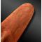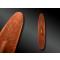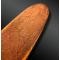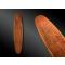 Bouclier de combat en bois monoxyle, entièrement recouvert de pigments ocre rouge et gravé sur les deux pans de motifs sinueux. Prise creusée au revers.