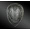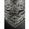 Le pourtour est à décor de de bandeau rubané, raie de perles, frises de médaillons, trophées d’armes et rinceaux. Au centre supérieur, la tête de la déesse Diane, sur la partie inférieure, une tête d’homme.