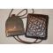 Dans une pochette en cuir avec un lacet.