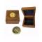 Boussole en laiton avec cadran verre. présentée dans son coffret en bois garni de feutrine