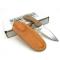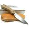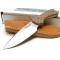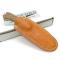 Longueur totale 17,14cm. Longueur de lame 8,89cm, Lame en acier N690 finition stonewash, Lame avec contre tranchant. Construction d'une seule pièce - Full Tang - Trou dans le manche pour dragonne. Plaquettes du manches Textured brown G-10. Etui cuir marron. Parfait pour une utilisation en EDC. Made In USA.