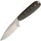 Longueur totale 19,05cm. Longueur de lame 8,89cm, Lame en acier N690 finition stonewash. Plaquettes du manche Camo linen micarta. Construction d'une seule pièce - Full Tang. Trou dans le manche pour dragonne. Affutage de type sabre. Etui cuir marron. Boxed. Made In USA
