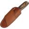 Longueur totale 19,05cm. Longueur de lame 8,89cm, Lame en acier Bohler N690, Lame de type drop point finition stonewash. Construction d'une seule pièce - Full Tang. Trou dans le manche pour dragonne. Affutage de type : Sabre. Plaquettes du manche Brown G-wood. Etui cuir marron. Made In USA