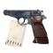 Pistolet à l'attention des tireurs/collectionneurs. Arme fabriquée par MANURHIN. C'est un pistolet dont l'état général est bon tout en possédant des traces de griffures éparses. L'état intérieur du canon est PARFAIT. L'arme possède l'option plaque ergonomique avec repose-pousse droitier et également l'option qui permet l'utilisation de chargeur à talon rallongé. Un éclat, qui a été recollé, est présent sur le talon du chargeur rallongé. (voir photo).