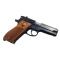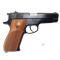 Pistolet de tir de fabrication 100% américaine par Smith&Wesson. Modèle 39-2 au calibre 9x19. Pistolet simple et double action. Arme disposant d'un canon de 130mm à l'état intérieur comme NEUF. Organes de visées : guidon acier fixe et hausse réglable en dérive. Etat géénral trés proche du neuf. Arme n'ayant pas grandes traces d'usure. Peu servie. Plaquettes bois en trés bon état également. Arme approvisionnée par un chargeur acier de capacité 8 coups.