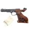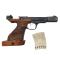 Pistolet de tir de fabrication française par la société UNIQUE à HENDAYE. Modèle DES-69. Pistolet semi automatique de Match doté d'un canon de 150mm à l'état intérieur COMME NEUF. Canon équipé d'un guidon acier fixe et hausse acier réglable élévation/dérive. Pisolet équipé d'un contre-poids, d'une détente à position réglable et de poids de départ réglable. Pistolet avec crosse ergonomique pour droitier. Approvisionné par un chargeur acier d'origine de capacité 10 coups. Pistolet fonctionnant parfaitement. En bon état général comme le prouve les photos.