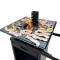 Le colis comprend : Meuble du braséro avec deux pieds et deux roulettes, tiroir à cendre, cuve, grille, support de grille, plan de travail amovible.