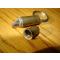 Joli briquet en laiton occasion comme neuf (( fausse balle)) fonctionnant a l'essence // S'ouvre en deux parties, dessus et dessous -- Une pour le recharger en térébentine + une côté balle pour le faire fonctionner en tournant la molette tout simplement pour former une belle étincelle qui allumera le briquet - Original par sa forme et sa matière - Etat neuf type artisanat de tranchées fabrication années 1990 - IL n'y a plus qu'à mettre un peu d'essence en dévissant la vis tenue par l'anneau - La pierre est dans son emplacement prévu - Jamais servi -