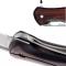 Signature Buck sur la lame. Manche fabriqué à partir de nylon moulé par injection avec incrustation profilée en palissandre Dymalux pour une prise en main confortable pendant l'effort.