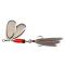 Une cuiller qui dégage un maximum de vibration ! L'action conjuguée de ces deux palettes déplace un fort volume d'eau et émet des vibrations puissantes qui ne passeront pas inaperçues! Utilisez la capacité «parachute» de cette cuiller en stoppant votre récupération un bref instant avant de reprendre votre rythme. Cette phase de «falling», ralentie par les deux palettes, est souvent créatrice d'attaque reflex ! Tige inox de 1.2mm. Teaser en «Bucktail» et « Tincel». Bille «cible» rouge à effet translucide pour concentrer les attaques au niveau de l'hameçon.