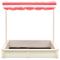 Bac à sable et toit réglable Bois de sapin Blanc et rouge UV50Ce bac à sable en bois avec toit de protection contre les UV est l'équipement de jeu parfait pour le divertissement en plein air. Ce bac à sable en bois est le supplément parfait à votre jardin car il encourage vos enfants à jouer à l'extérieur, construire des châteaux de sable et augmenter leur imagination. De plus, le bac à sable comporte un toit ouvrant hydrofuge réglable en hauteur qui protège les enfants de la lumière directe du soleil. Vos enfants peuvent avoir beaucoup de plaisir à jouer dans ce bac à sable ! Attention Réservé à un usage familial. Le produit nécessite d>être assemblé par un adulte. À utiliser sous la surveillance d'un adulte. Utilisation domestique seulement. GPSR