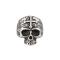 Cette bague en acier inoxydable avec un diamètre intérieur de 21 mm adopte la forme d’un crâne détaillé, orné d’une croix en relief sur le front et de motifs gravés sur toute la surface.