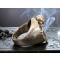 Cette pièce unique arbore un crâne et des ossements en relief sur un fond texturé. La disposition des os, l'un vertical et l'autre horizontal, forme une croix symbolique qui donne à ce bijou tout son caractère provocateur et distinctif.