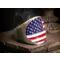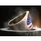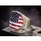 Bague en laiton massif, métal noble au ton doré vieilli, ornée d’un sceau représentant le drapeau des États-Unis (diamètre 2 cm).
