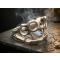 Bague en laiton massif, métal noble au ton doré vieilli, poing américain stylisé, symbole de force, rébellion et esprit biker.