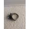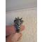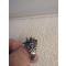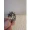 bague en fer ou en acier, hérissée de pointes en hérisson, à decors de tête de mort et tibias croisés, vanité, mento mori. Fabrication américaine des années 1980. Bon etat trace d usage. Marqué du fabricant G&S et daté 1985 Diamètre de l anneau: 2,8cm Hauteur totale: 3cm
