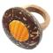 Bague ronde en bois de coco et coquillage pecten orange incrusté 50