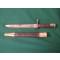 Baionette pour Fusil Mauser celui M1908 de l´armée Brasilienne, avec numeros au fourreau cuir " 1428" .á la lâme " Simson & C ,á SUHL, une goutiére .Poignée de bois en condition moyenne.Quelque oxydation, mais nettoyée.
