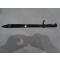 Belle baïonnette modèle 98/05 réutilisée pendant la seconde guerre mondiale avec son gousset WW.2 et ses rivet en aliuminium. Longueur de la Baïonnette 550 mm, longueur de la lame 471 mm, poignée en bois striée, marquage fabriquant SCHLEUTERMANN REMSCHE D. Marquage sur la tranche, voir la photo. Très bon état. Manque la petite vis en haut du fourreau. Bon achat à tous et merci de regarder mes autres objets.