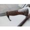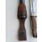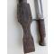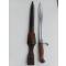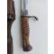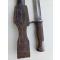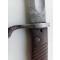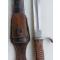 Baïonnette allemande 98/05, Fabriquée par la firme Pack Ohliger à Solingen, datée W17, fourreau bleui d'origine avec petites piqûres de rouille par endroits, cuir en bon état avec rivets en fer. Lame en très bon état. Bouton poussoir fonctionnel.Légère oxydation sur la poignée par endroit.