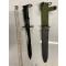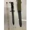 Le fourreau de première génération est constitué d’un corps de forme angulaire en plastique moulé noir, le trou destiné à évacuer l’eau débouche directement sur celui utilisé pour le passage du lacet de maintien. La chape en tôle d’acier, est maintenue au corps par emboutissage. Un dispositif de verrouillage extérieur (ressort à lame muni d’un crochet plié) sur le côté, permet de bloquer correctement la baïonnette dans le fourreau.