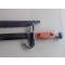 La poignée comme le reste de la baïonnette est entièrement bronzée, les plaquettes neuves en bois exotique sont maintenues entre elles par boulons à tête arrondie et écrous."