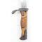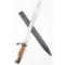 Les plaquettes sont en bois strié et le fourreau est en métal, bronzé noir.