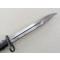 Baïonnette britannique N°7 MK1/L pour fusil Enfield N°4 et STEN MKV. Cette baïonnette a été conçue en 1944 et produite en pré série la même année par Wilkinson Swords à 1000 exemplaires avant d’être adopté en janvier 1945. Par la suite, la production de série sera confiée à 4 fabricants qui en produiront 176000 exemplaires entre 1945 et 1948. Avec l’adoption assez rapide de la baïonnette N°9, la production de la N°7 cessera et elle sera réservée à la Brigade de la Garde qui l’utilisera jusque dans le années 1970, principalement pour les cérémonies. Cet exemplaire est en très bon état et les photos participent à sa description. De par le code marqué sur la lame, M/78 à côté du Broad Arrow, celle-ci a été produite par Elkington & Co. Ltd à Birmingham. Ce fabricant n’en a produit que 20 000 exemplaires. Lame sans oxydation, sans dent, sans trace d’affutage, marquage sur le haut de lame bien visible des 2 côtés. Système de verrouillage fonctionnel, système de douille pivotant fonctionnel. Fourreau d’origine en très bon état avec sa peinture d’origine.