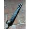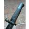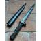 Baïonnette allemande 84/98 modifié. Dans son jus, une douille a été ajouté à la baïonnette au niveau de la garde. Je ne sais pas si il s'agit d'une modification d'époque ou bien d'un bricolage. J'ai cherché dans l'ABC mais je n'ai rien trouvé à ce sujet. Si quelqu'un en sait un peu plus, les infos sont les bienvenus. Le fourreau n'est pas celui d'origine et il a été renforcé avec une chape de plombs. Le bouton poussoir fonctionne. Les photos font partis du descriptif, posez vos questions, ni repris ni échangé.