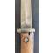 Baïonnette avec une très belle restauration d' un fabricant assez rare les poinçons sont présents mais presque illisible . Le bouton de fixation fonctionne le bois et dans un bon état d allieur le bois et( peut être en chêne ?). Le fourreau a était repeint avec une fine peinture d' un ton bronze arme sans trace de pinceau. Il a 2 renforcements qui gêne pas l entrée de la lame ni son aspect général.