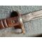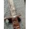 Très bel exemplaire de baïonnette américaine modifiée et réutilisée à la hâte à partir de 1940 pour équiper les soldats de la home guard ces dernières avaient été cédées à l'armée anglaise, celle ci a été modifiée le crochet du fourreau a été supprimé et adapté à un gousset plus ancien. Excellent état avec porte fourreau et crochet de ceinture.