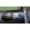 Lame excellente , pointe bonne; bouton-poussoir grippé (dégrippage requis) ; plaquettes bois solides usées naturelles .