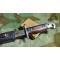 Longueur totale lame environ 43 cm, poignée bois et crossguard ovales typiques .