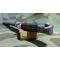 Fourreau cuir original avec embouts métal, lamelles internes intactes assurant stabilité lame, bouton-poussoir fonctionnel .