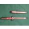 Baïonnette couteau à utiliser avec le 8 mm. Fusil yougoslave M1948 Mauser, étroitement calqué sur le 8 mm allemand. Mauser Kar 98k. La baïonnette M1948 était une version courte de la baïonnette M1924 d'avant-guerre, adoptée lorsque la Yougoslavie reconstruisit le Vojno Tehnicki Zavod (Institut technique militaire), totalement détruit pendant la Seconde Guerre mondiale. Le marquage cyrillique (?????????) a été utilisé jusqu'en 1953, date à laquelle ils sont passés au marquage occidental (PREDUZECE). En anglais, cela signifie « usine » ou « entreprise ». L'usine 44 était la Zavodi Crvena Zastava (usine du drapeau rouge) à Kragujevac, en Serbie. L'usine est toujours en activité aujourd'hui et est connue sous le nom de Zastava Arms.