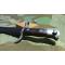 Poignée deux plaquettes bois sombre fixées rivets, pommeau bouton verrouillage longitudinal fluide pour rail Mosin-Nagant finlandais .