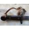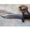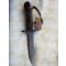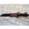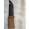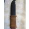 poignée rouge bordeaux uni ,une gaine isolante jaunâtre et un porte fourreau distintif très court coinstitué de 2 mousquetons et d'un passant en cui marron.