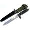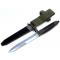 The bayonet blade is unified with the M4 - M7 bayonets series and their sheath is interchangeable. The bayonets produced by different companies differ slightly in the form of a blade and marking. The bayonets of early production were equipped with scabbard made of plastic, imitating the wooden surface, and had a latch at the front. Later bayonets were equipped with a black plastic sheath with a latch at the back.
