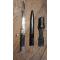 Dimensions : longueur totale baïonnette 32 cm, longueur lame 20c m, longueur totale baïonnette dans fourreau 36 cm.
