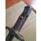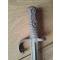Baionnette scolaire type Chassepot, en fonte moulée monobloc, état jus de grenier, un numero sur la croisière 6, longueur de la baionnette 38,5 cm, trou de fixation au canon de diamètre 16 mm , bouton poussoir par lame ressort fonctionnel.