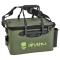 Bakkan GUNKI réalisé dans une matière EVA souple de 1.5mm (Polyester), solide, étanche et imputrescible. Le couvercle peut être maintenu à demi-ouvert grâce à un bouton pression, ce qui permet d'accéder au materiel tout en protégeant au maximum l'intérieur des intempéries. Sangle épaulière confortable et amovible pour éviter de se prendre les pieds dedans en bateau! Elle permet également de sécuriser le bagage avec son système de clip. Poignée de transport ergonomique pour plus de confort.