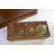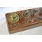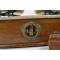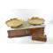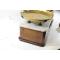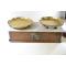 Balance de commerce avec ses poids, plateau marbre blanc, bois et laiton. Collection comptoir