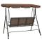 Balancelle de jardin avec auvent Café Détendez-vous dans votre jardin, sur votre terrasse ou dans tout autre espace extérieur sur cette balancelle, équipée d'un grand auvent. Le cadre en acier enduit de poudre rend la balancelle stable et durable. L'assise et le dossier sont fabriqués en textilène résistant aux intempéries et imperméable, ce qui rend la balancelle facile à nettoyer. Elle peut accueillir trois personnes et fournit de l'ombre grâce à son grand auvent. Vous apprécierez de vous balancer sur la chaise avec la brise d'été. Notre balancelle est un choix parfait pour votre espace extérieur. L'assemblage est vraiment facile. Maximum 110 kg par siège.