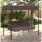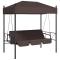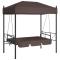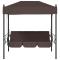 Balancelle de jardin avec auvent marron café acierCe banc balançoire de jardin est parfait pour se rencontrer entre amis ou profiter de l'été en famille. Fonction 2 en 1 : cette balancelle sert à la fois de chaise spacieuse pour 2-3 personnes et de lit pratique lorsqu'il est déplié. Avec auvent : cette balancelle est livrée avec un auvent en polyester qui peut vous protéger entièrement des rayons UV et de la pluie fine lorsque vous vous asseyez dans la balancelle. Confortable : le siège de la balançoire de jardin est doté de coussins d'assise doux et confortables avec une housse en polyester et un rembourrage en fibres. Il est doté d'un dossier légèrement incliné et d'accoudoirs confortables, assurant une expérience confortable. Stable et durable : la structure de la balancelle est constituée d'un cadre en acier enduit de poudre, qui garantit une résistance à la corrosion et est robuste et durable. Multifonctionnelle : cette balancelle est parfaite pour les loisirs à la maison. Que vous vous détendiez dans votre jardin, sur votre terrasse ou sur votre balcon, vous pouvez vous asseoir ou vous allonger et profiter de votre temps libre en plein air. Maximum 110 kg par siège. Soyez conscient du risque de feux ouverts et d'autres sources de forte chaleur à proximité du produit.