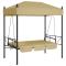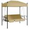 Balancelle de jardin avec auvent sable acierCe banc balançoire de jardin est parfait pour se rencontrer entre amis ou profiter de l'été en famille. Fonction 2 en 1 : cette balancelle sert à la fois de chaise spacieuse pour 2-3 personnes et de lit pratique lorsqu'il est déplié. Avec auvent : cette balancelle est livrée avec un auvent en polyester qui peut vous protéger entièrement des rayons UV et de la pluie fine lorsque vous vous asseyez dans la balancelle. Confortable : le siège de la balançoire de jardin est doté de coussins d'assise doux et confortables avec une housse en polyester et un rembourrage en fibres. Il est doté d'un dossier légèrement incliné et d'accoudoirs confortables, assurant une expérience confortable. Stable et durable : la structure de la balancelle est constituée d'un cadre en acier enduit de poudre, qui garantit une résistance à la corrosion et est robuste et durable. Multifonctionnelle : cette balancelle est parfaite pour les loisirs à la maison. Que vous vous détendiez dans votre jardin, sur votre terrasse ou sur votre balcon, vous pouvez vous asseoir ou vous allonger et profiter de votre temps libre en plein air. Maximum 110 kg par siège. Soyez conscient du risque de feux ouverts et d'autres sources de forte chaleur à proximité du produit.