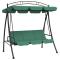 Balancelle de jardin avec auvent vert 198 cm tissu et acierCette balancelle de jardin avec auvent devient le point central de votre jardin ou de tout autre espace de vie extérieur. Matériau durable : le tissu Oxford est léger, résistant à l'eau, ainsi qu'aux dommages et à la saleté. Le fil utilisé pour le tissage rend le tissu durable et respirant. Il est également naturellement résistant aux plis.Cadre robuste et stable : le cadre de la balancelle de jardin est fabriqué en acier enduit de poudre. L'acier est un matériau exceptionnellement dur et solide. Il offre robustesse et stabilité. Le revêtement en poudre de l'acier crée une couche protectrice contre l'usure.Conception de balancement : vous pouvez vous balancer doucement d'avant en arrière sur cette balancelle pour vous détendre pendant vos loisirs.Fonction d'auvent : la balancelle est équipée d'un auvent en polyester pour vous protéger des rayons directs du soleil lorsque vous lisez ou vous détendez les jours d'été.Design convertible : la balancelle de jardin peut être convertie en lit pour une pause relaxante.Assise confortable : le dossier et le coussin de la balançoire de jardin offrent un confort d'assise supplémentaire. Maximum 110 kg par siège. Soyez conscient du risque de feux ouverts et d'autres sources de forte chaleur à proximité du produit.